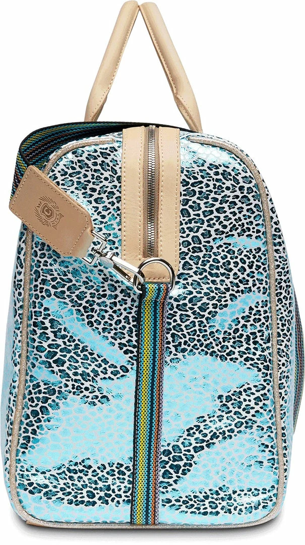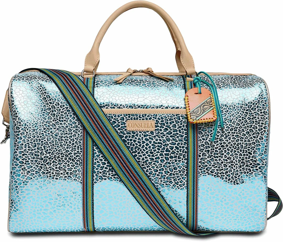 Our largest duffel style, the Weekender, is our go-to for weekend road trips. This duffel is roomy enough for all your essentials and features leather handles, an adjustable webbing strap, two interior pockets, and two exterior pockets. If youโre looking for a TSA carry-on compatible bag, check out the Jetsetter or the Zipperย Tote!