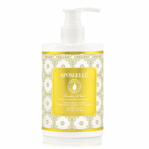 Introducing our Freesia Pear Body Lotion in a brand new, compact design with 100+ pumps per bottle. A perfect combination of shea butter, jojoba oil, and vitamin E offers a unique and pampering feeling day and night. This emollient formula provides your skin with just the treat it needs. Use after showering with your Spongellé Body Wash Infused Buffer for a finishing touch. Vegan friendly, cruelty-free and paraben-free.