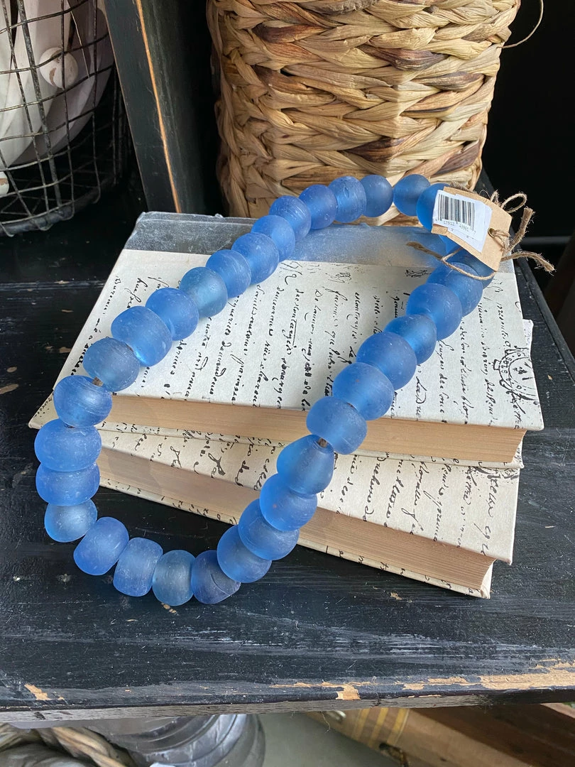 Beautiful blue glass beads that can be used as a home decor accent for any part of your home if you are needing a little pop of color.