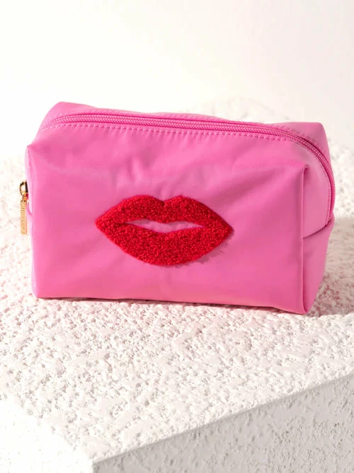 Store your odds and ends with Shiraleah’s Cara Lips Cosmetic Pouch. This pouch features an image of lips in sherpa adding texture and a fun detail to this essential pouch. Measuring L 7″ × W 3″ × H 4″, and made from nylon, the Cara Lips Cosmetic Pouch is perfect for holding your makeup, toiletries, etc. either in a vanity drawer at home, or in another bag on the go. Pair with other items from Shiraleah colletion to complete your look!
