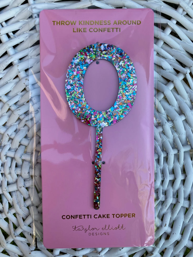 Add the perfect sparkle to your cake with this adorable acrylic cake topper!Β Β Confetti is hand sprinkled in to the acrylic — there is no shedding because it’s inside the acrylic. Because of this unique process, no two pieces will be exactly alike.Β