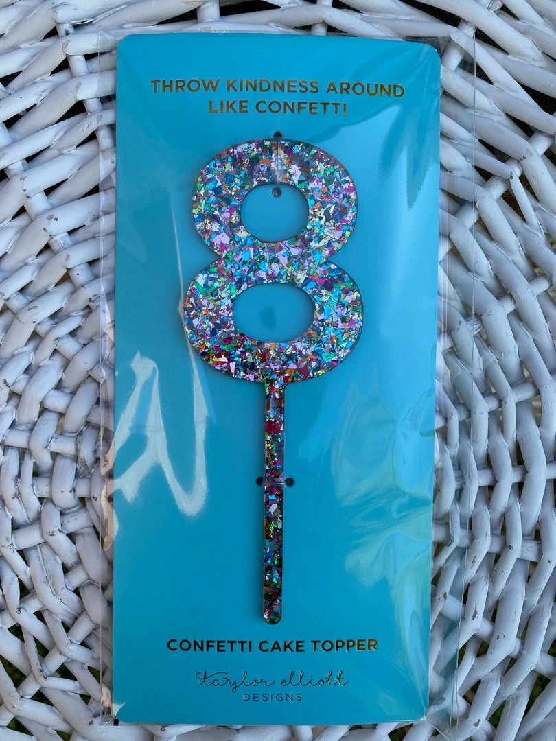 Add the perfect sparkle to your cake with this adorable acrylic cake topper!Β Β Confetti is hand sprinkled in to the acrylic — there is no shedding because it’s inside the acrylic. Because of this unique process, no two pieces will be exactly alike.Β