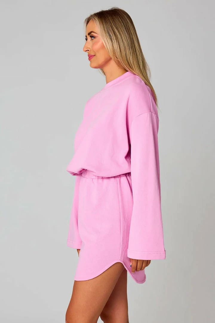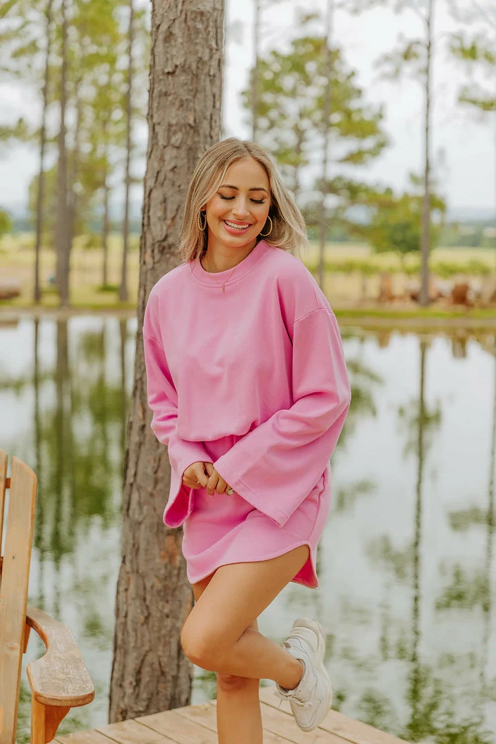 The Willa Dress is the definition of comfy and cute! This sweatshirt material dress has an elastic waist with a body-con mini skirt and loose fitting top. The bell sleeves are the perfect edition to add some flair to this look. Style the Willa with a pair of our sneakers for a cute on the go look!