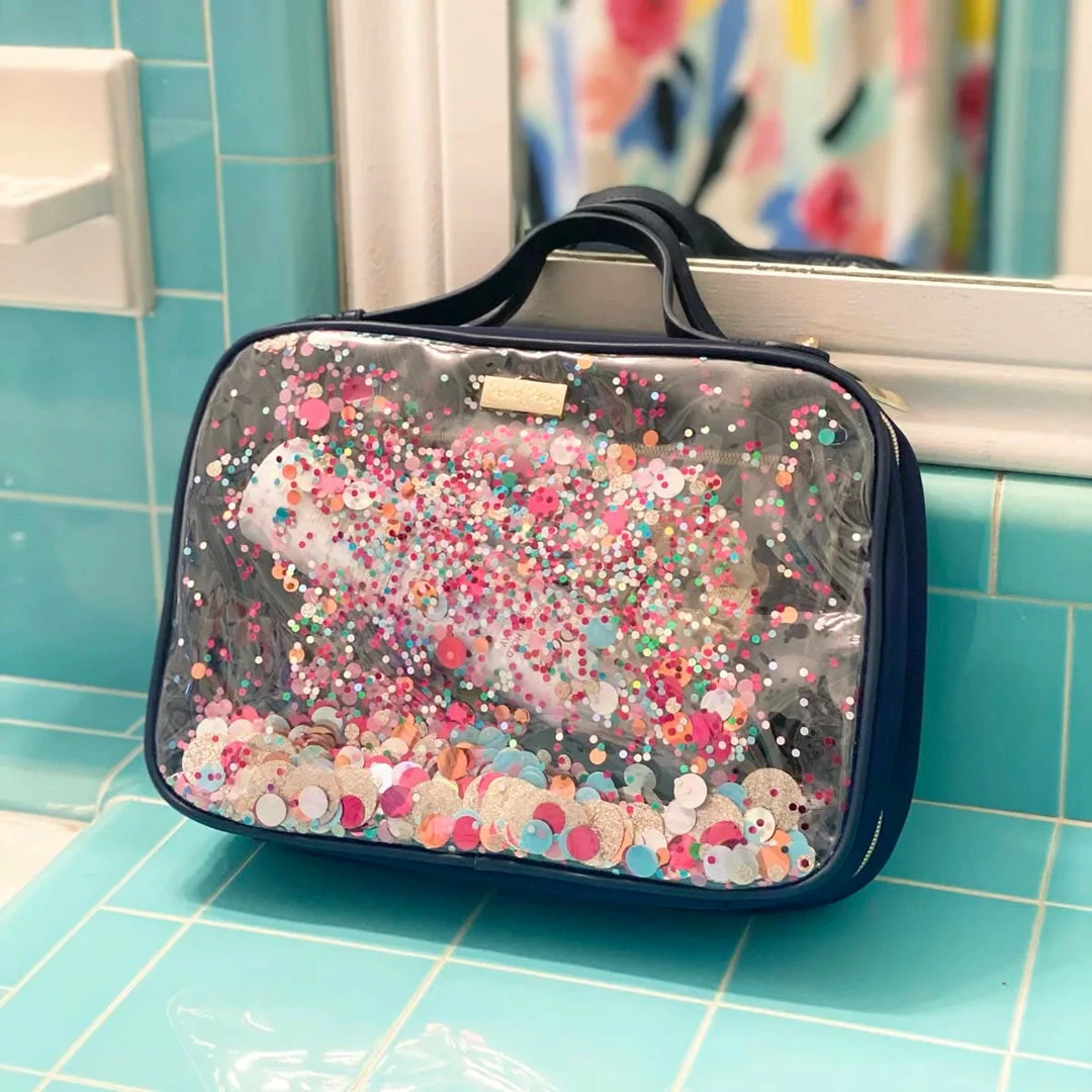 Carry a little confetti wherever you go thanks to this travel make-up and toiletry bag we designed with your jet set lifestyle in mind. Perfect for the girl looking to put all her essentials in one easy place is this zip with 3 compartments ideal for make-up, skincare must-haves, and even some jewelry too. What’s not to love?