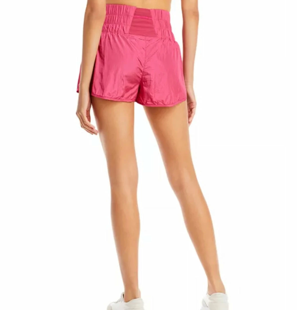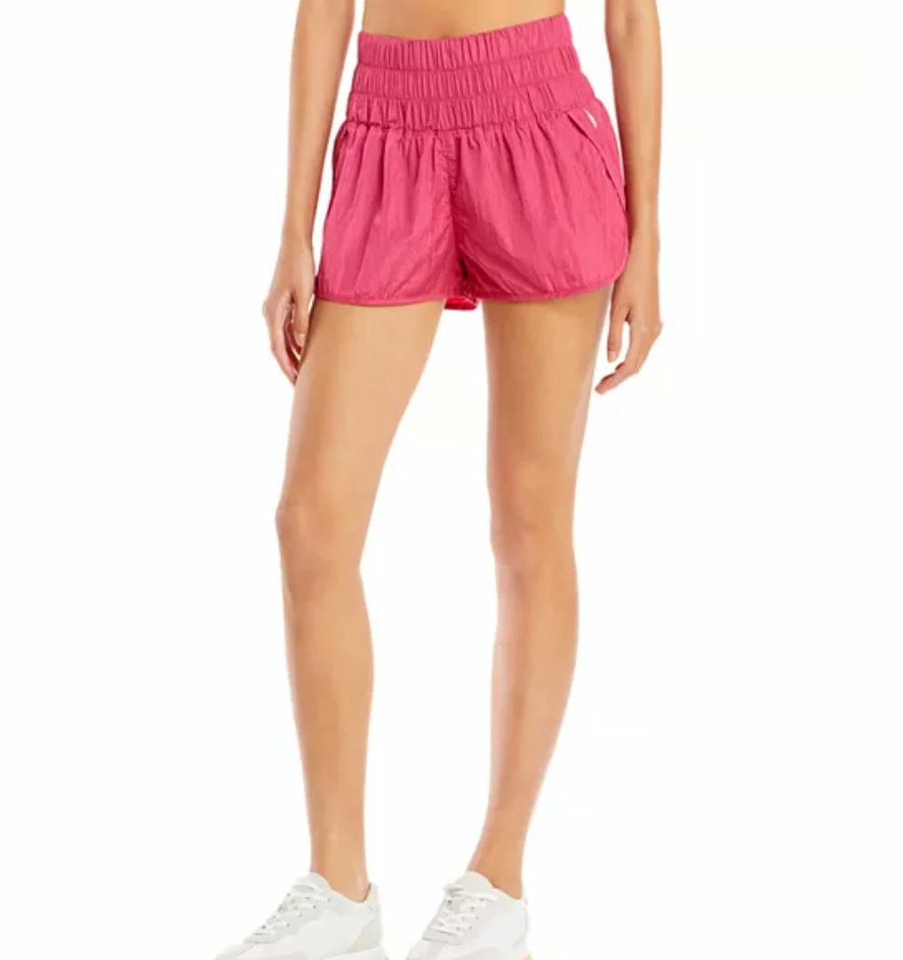 Speed up or slow down in these breezy, warm-up style running shorts, featuring a boldly smocked waistband with a high-rise silhouette and split hem.