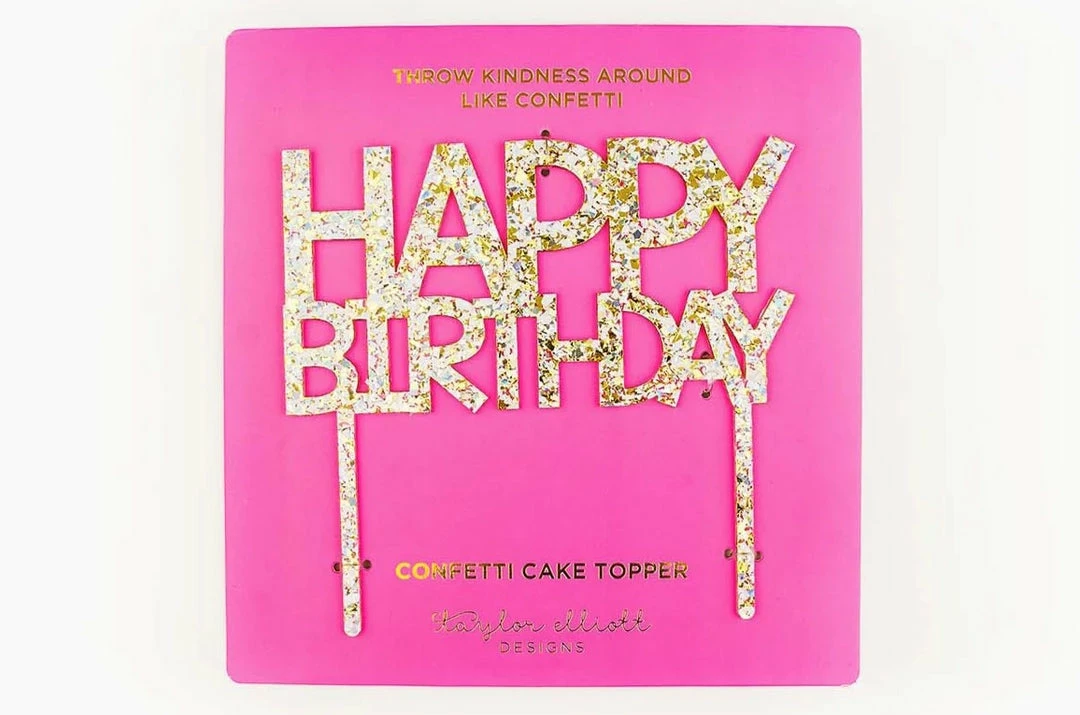 We’re making celebrations more fun with our colorfulΒ confetti acrylic cake toppers! Our signature confetti mix includes the brightest assortment of colors including: pink, gold, silver hologram, kelly green, lime green, blue, teal, orange, and lavender.Β