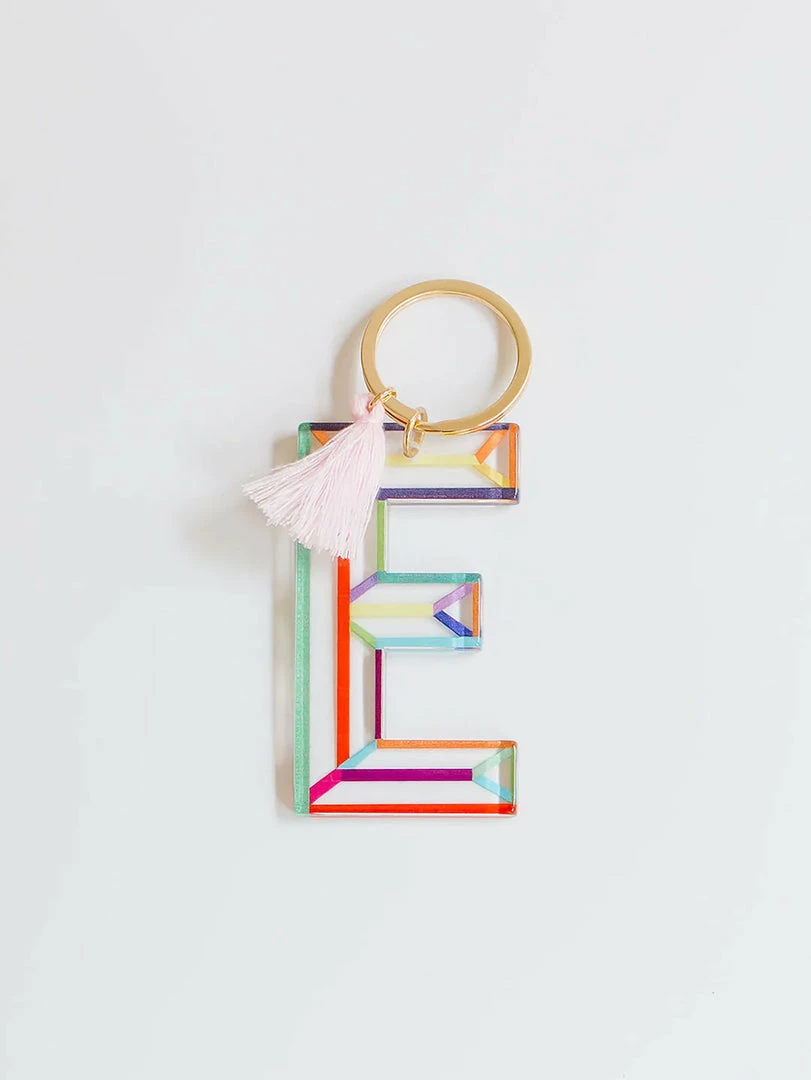 - Acrylic initial keychain with gold hardware
