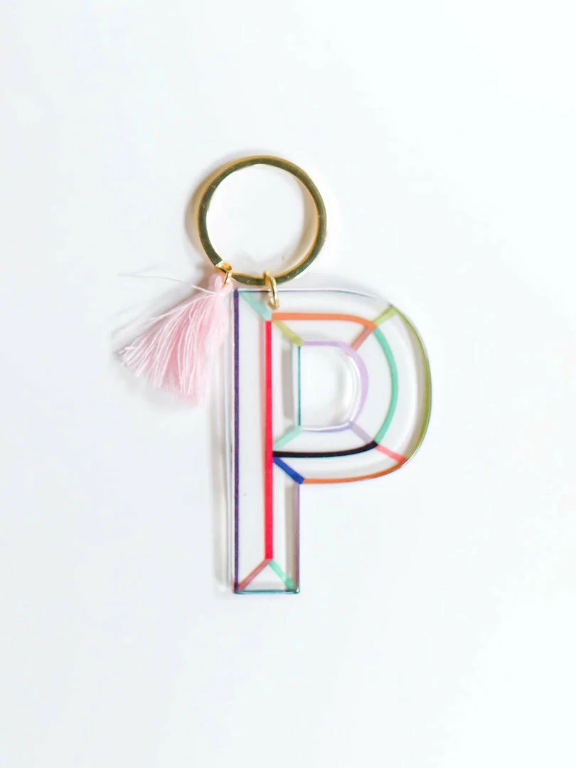 - Acrylic initial keychain with gold hardware