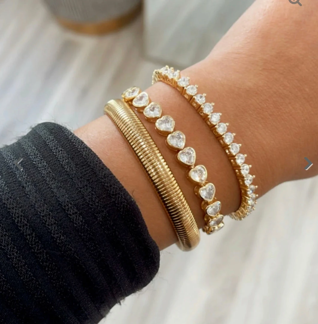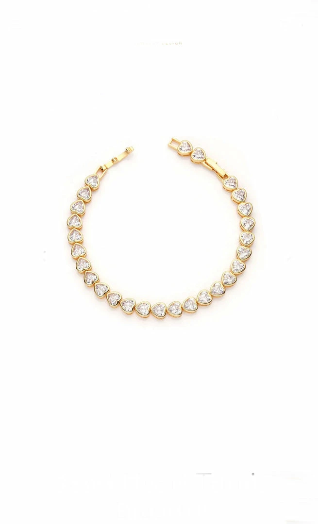 An everyday take in the classic bazel tennis bracelet. This CZ heart tennis bracelet is the perfect addition to any stack!!!