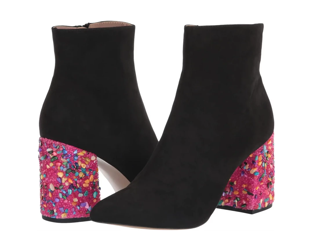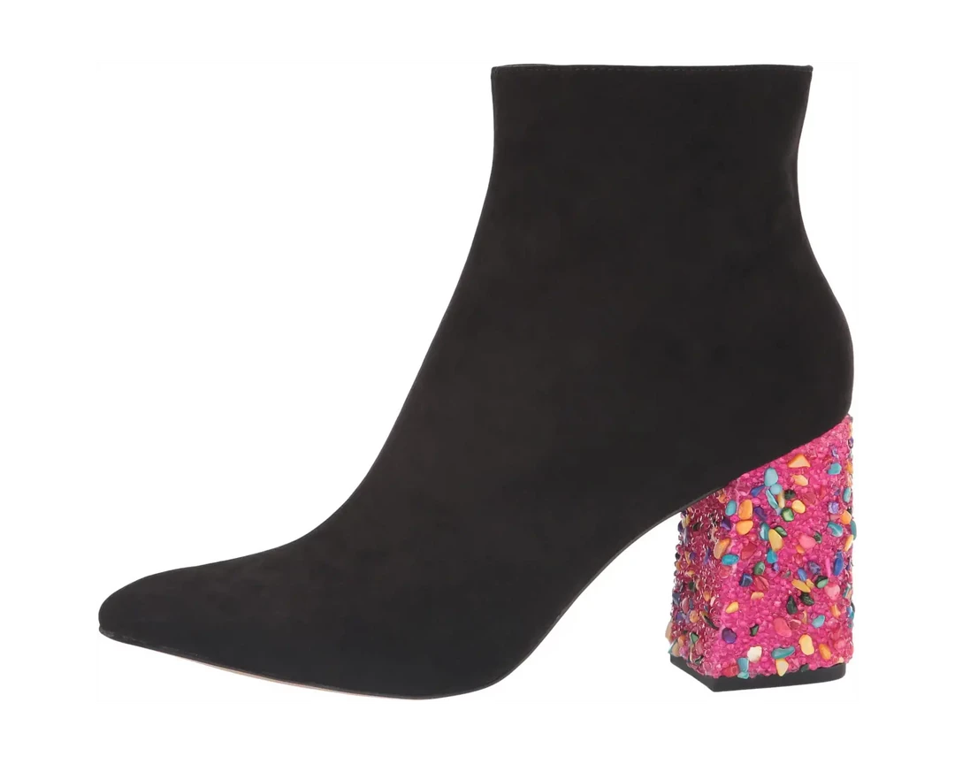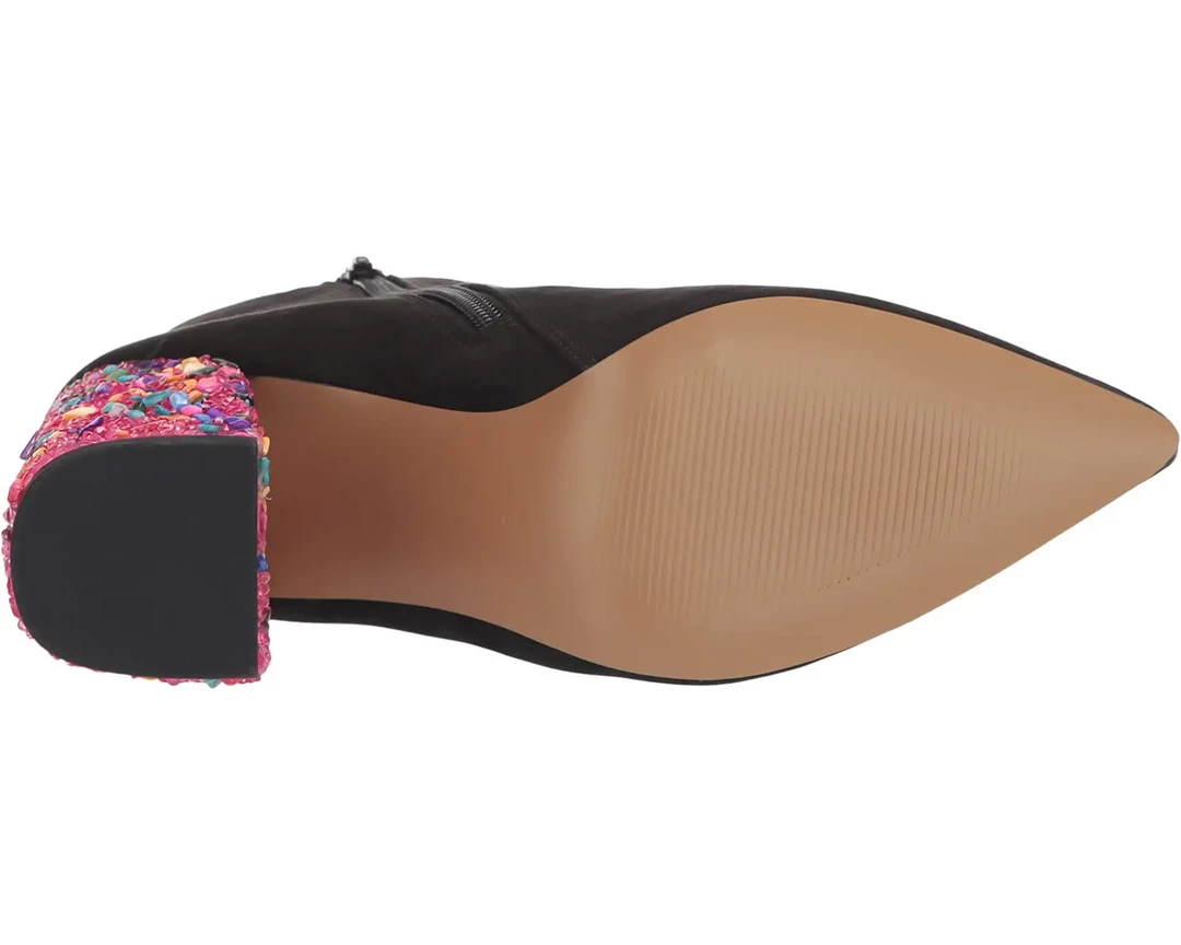 The KASSIE is a playful ankle boot ready to make an entrance. These ankle booties give a glamorous edge with their decked out in all-over rhinestones block heel and pointed toe.