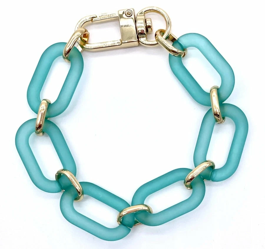 - Teal lucite and stainless steel gold plated link and closure