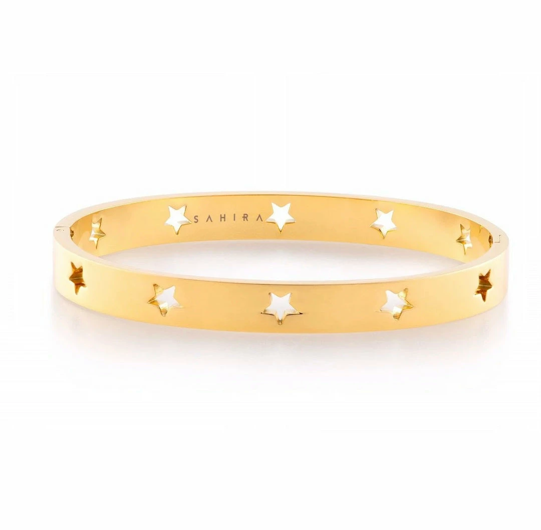 Our star bangle is perfect for layering with any other bangle or chain bracelet. Perforated stars all around.