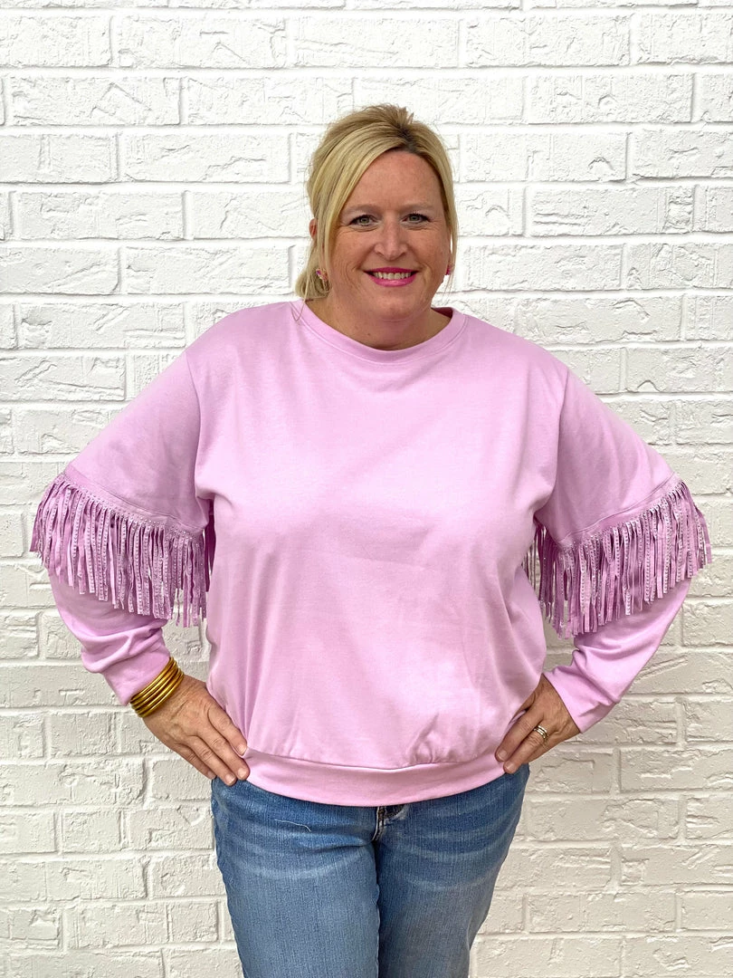 Ummmm…this might just be the cutest sweatshirt ever!ย Scoopneck sweatshirt with studded fringe around the arms and back.ย Whether you are needing just a fun casual look with leggings, or need a little something extra for the honkey tonk…look no further!!ย Add to cart ASAP!