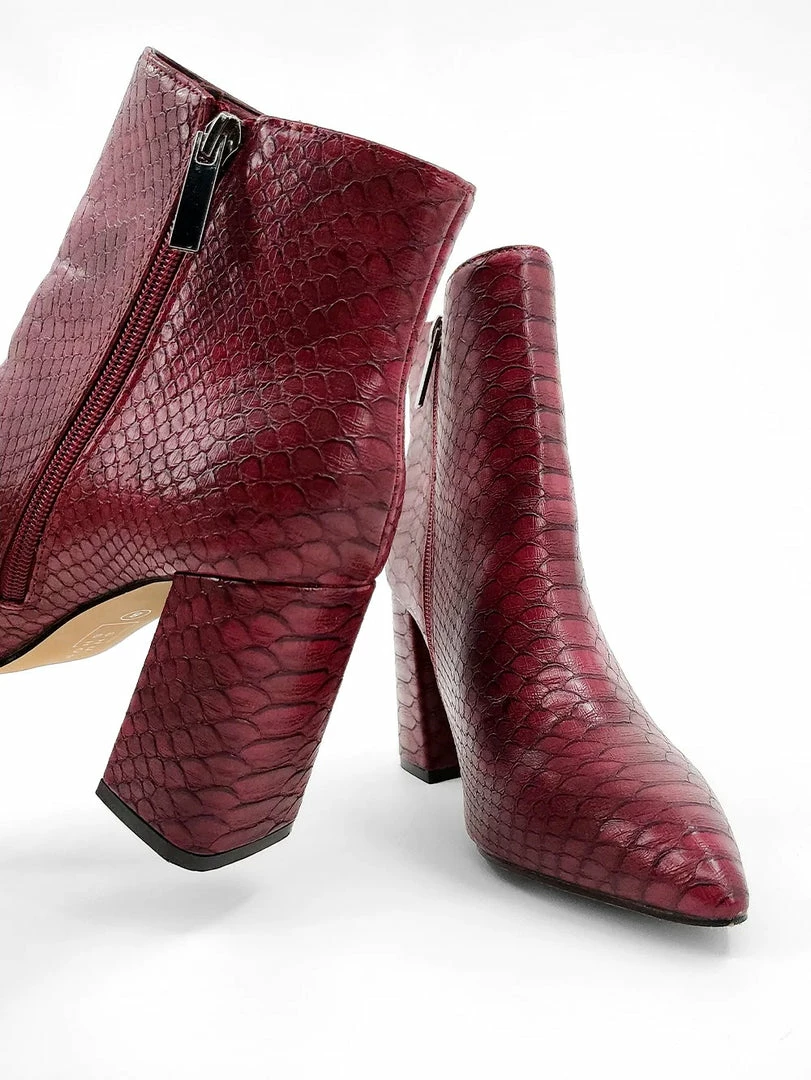 VERONICA’s versatility relies heavily on its sleek understated silhouette, sharp materials and comfortable stacked heel. Wear these faux snakeskin ankle boots with anything from cropped jeans to midi skirts.