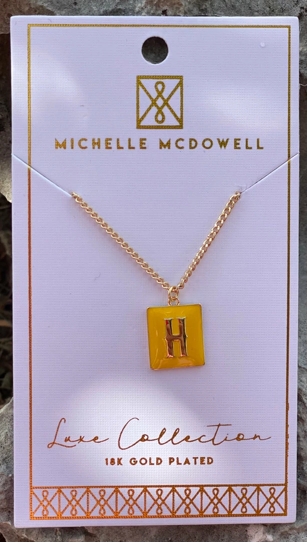 - 18k gold plated necklace with enamel inlay letter charm
