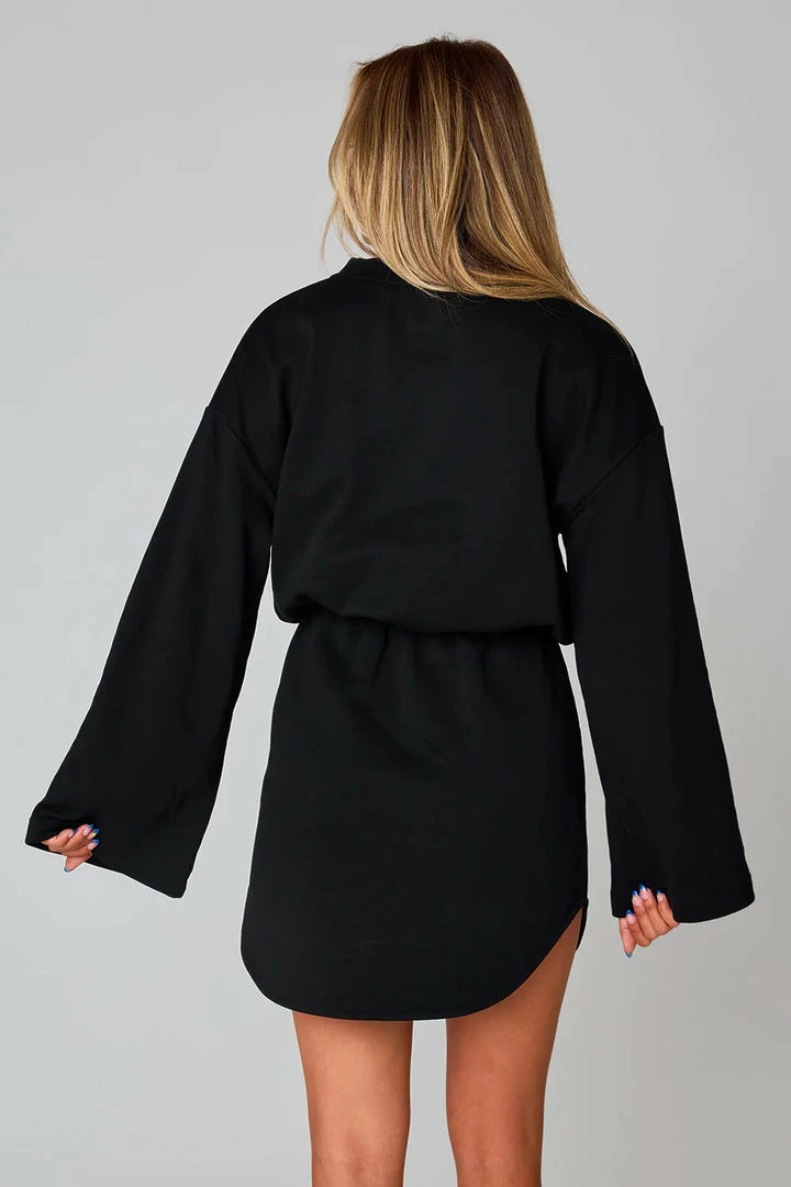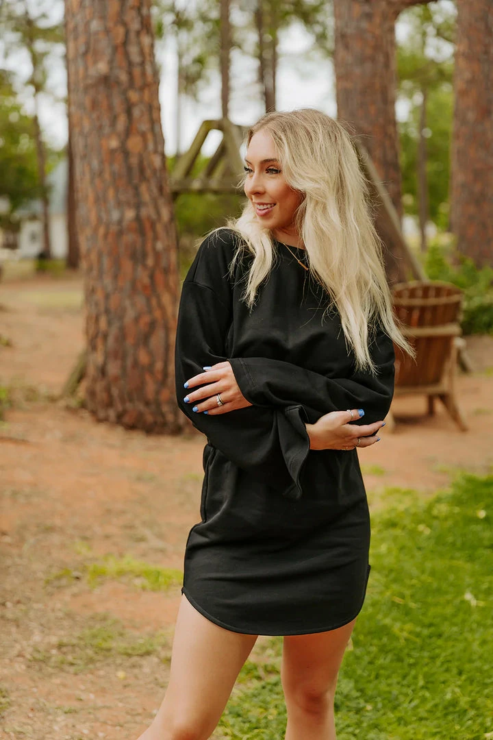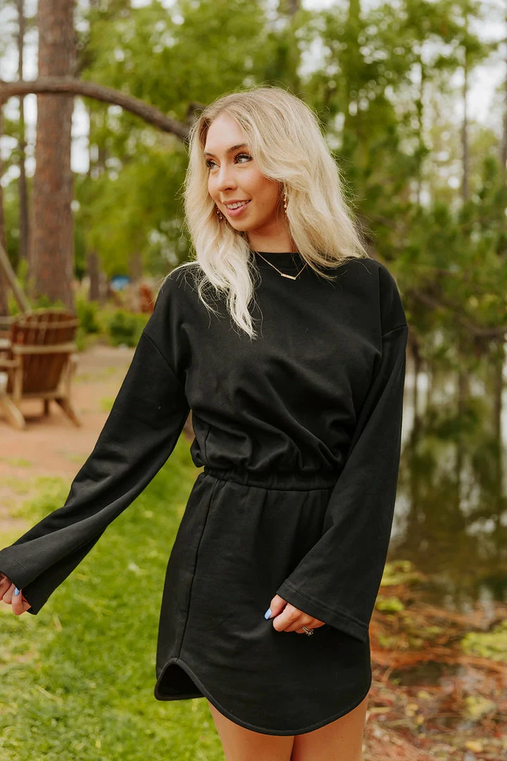 The Willa Dress is the definition of comfy and cute! This sweatshirt material dress has an elastic waist with a body-con mini skirt and loose fitting top. The bell sleeves are the perfect edition to add some flair to this look. Style the Willa with a pair of our sneakers for a cute on the go look!